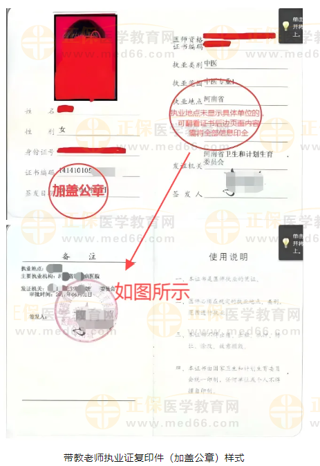 带教老师《医师执业证书》复印件,并加盖公章(照片页、个人信息页及变更记录信息需全部复印);