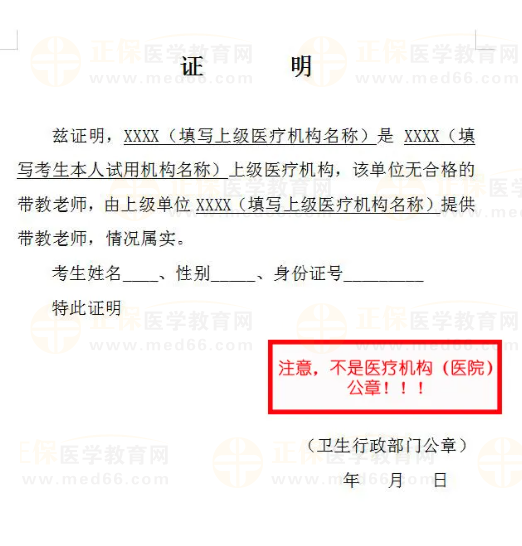 ●带教老师注册单位和考生试用机构必须是同一个,多点执业的,须提供和考生同一执业地点的证明材料加盖卫生行政审批部门公章;