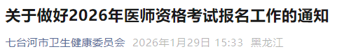 黑龙江七台河2026年医师资格考试报名&审核&缴费&考试安排已公布!请相关考生及时查看,做好报名审核准备!