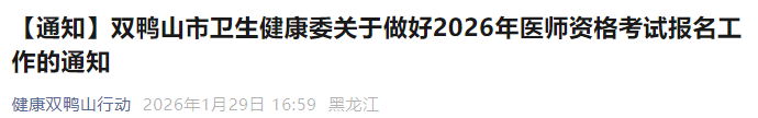 黑龙江双鸭山2026年医师资格考试报名|审核|考试安排已公布!请相关考生及时查看,做好报名审核准备!