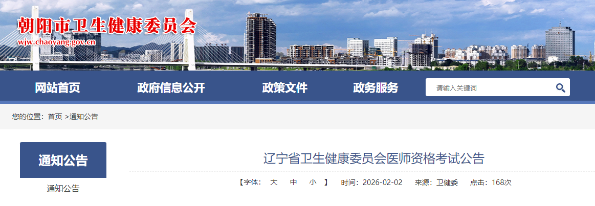 按照《国家卫生健康委员会医师资格考试委员会公告》(2026年第1号),2026年将在全国举行医师资格考试。临床、口腔、公共卫生类别和乡村全科执业助理医师医学人文部分启用修订后的考试大纲。现就辽宁省2026年医师资格考试有关事项公告如下: