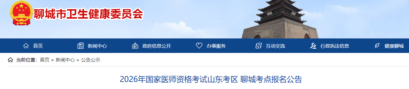 根据《国家卫生健康委员会医师资格考试委员会公告》(2026年第1号)和山东考区工作安排,现将2026年国家医师资格考试山东考区聊城考点报名工作有关事项公告如下: