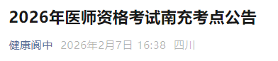 四川南充2026年医师资格考试报名&审核&缴费&考试安排已公布!请相关考生及时查看,按时完成报名审核!
