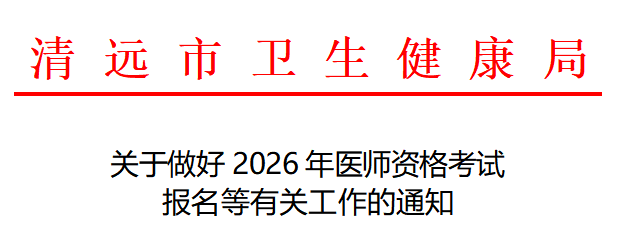 广东清远2026年医师资格考试报名&审核详细安排及要求已公布!请相关考生及时查看,按时完成报名审核!