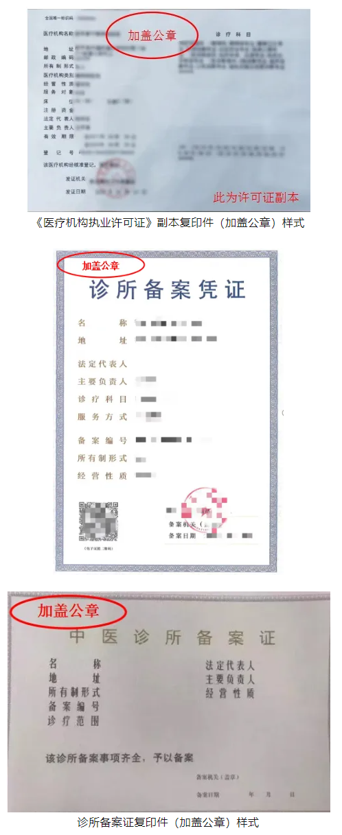 ●医疗机构升级的,副本后有加注升级的说明即可(加盖公章),如没有则需要提供卫生行政部门开具的证明以说明原机构与现机构是同一医疗机构。