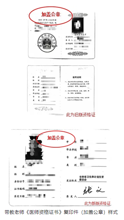 8.带教老师《医师资格证书》复印件,并加盖公章(照片页、个人信息页需复印完整)。