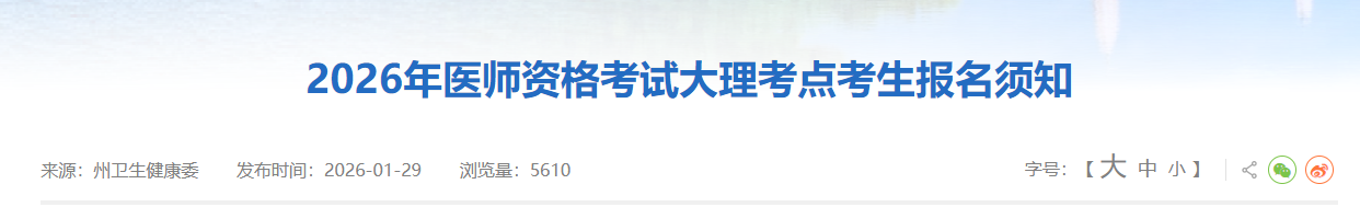 云南大理2026年医师资格考试报名&审核&缴费安排已公布!请相关考生及时查看,做好报名审核准备!