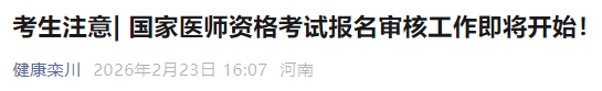 河南洛阳栾川县2026年医师资格考试现场审核时间安排及要求已公布!请相关考生及时查看,做好审核准备!