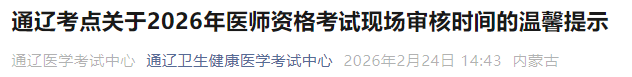 有变更!内蒙古通辽2026年医师资格考试现场审核3月6日截止!请相关考生及时查看,做好审核准备!