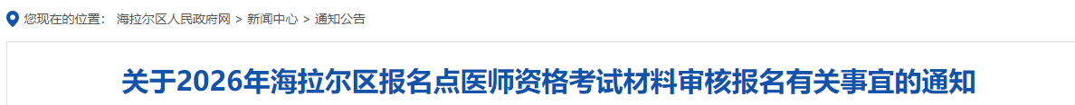 内蒙古呼伦贝尔海拉尔区2026年医师资格考试现场审核安排已公布!请相关考生及时查看,做好审核准备!
