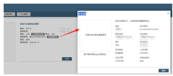 持2001年以来国家承认的各类高等教育学历证书报名的考生均需通过学信网扫码授权进行学历验证。如有多个学历,APP上选择的学历应与报名时填报的学历保持一致。若对应错误,可重新扫码验证进行更正。