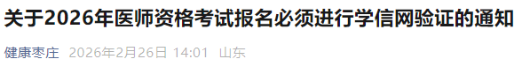 山东枣庄2026年医师资格考生速去学信网验证,3月1日截止!请之前没有完成学信网验证的考生尽快扫码验证,避免影响报考!