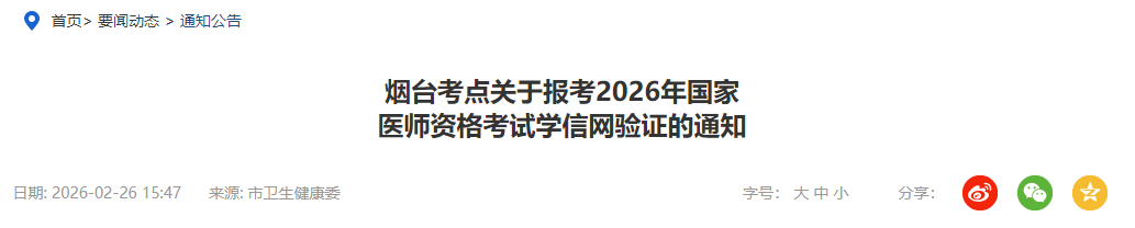 2请及时关注烟台市卫生健康委员会官网(wjw.yantai.gov.cn)获取医师资格考试其他相关消息。