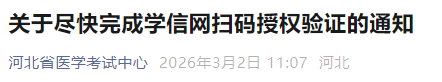 - · 内蒙古2026年医师资格考试学信网扫码验证(学历电子凭证)提醒
