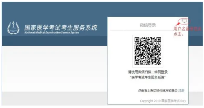 (二)在个人登录界面,可扫描二维码或使用本人账号密码登录国家医学考试考生服务系统。