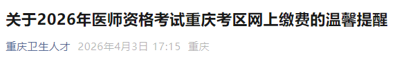 重庆市2026年医师资格考试实践技能缴费入口已开通!以下为重庆市官方提醒,请相关考生仔细查看,按时完成技能缴费!