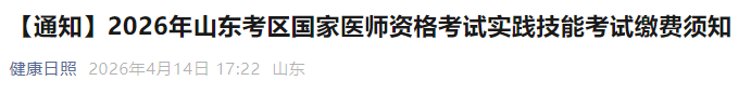 - · 山东泰安2026年医师资格考生注意:实践技能缴费4月17日开始!