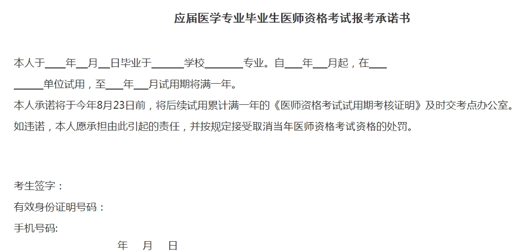 8、《应届医学专业毕业生医师资格考试报考承诺书》1份(附表四)