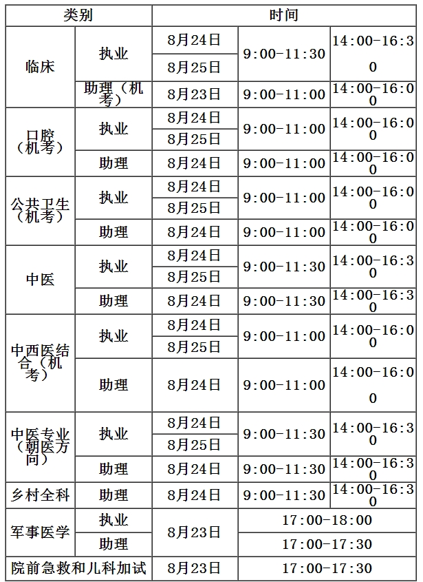 2019年医师资格考试时间