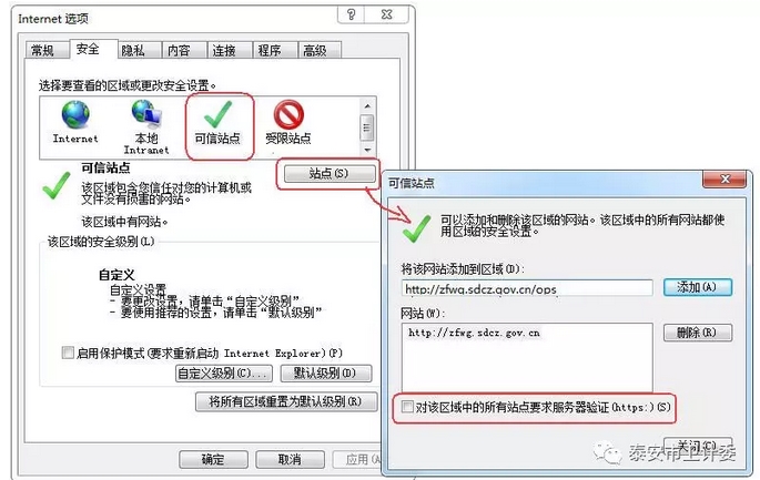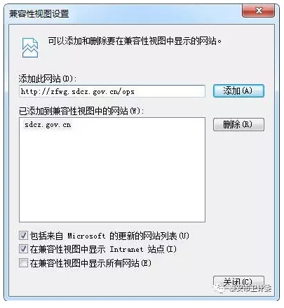 2. 在“将该网站添加到区域”栏输入“http://zfwg.sdcz.gov.cn/ops”,点“添加”按钮。