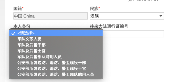 答:在“本人身份”下拉列表中选择自己相应的身份即可,注意现役与聘用人员的区别。如下图: