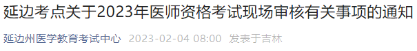 延边考点发布了关于2023年医师资格考试现场审核有关事项的通知,医学教育网小编专门整理如下,请相关考生仔细查看!
