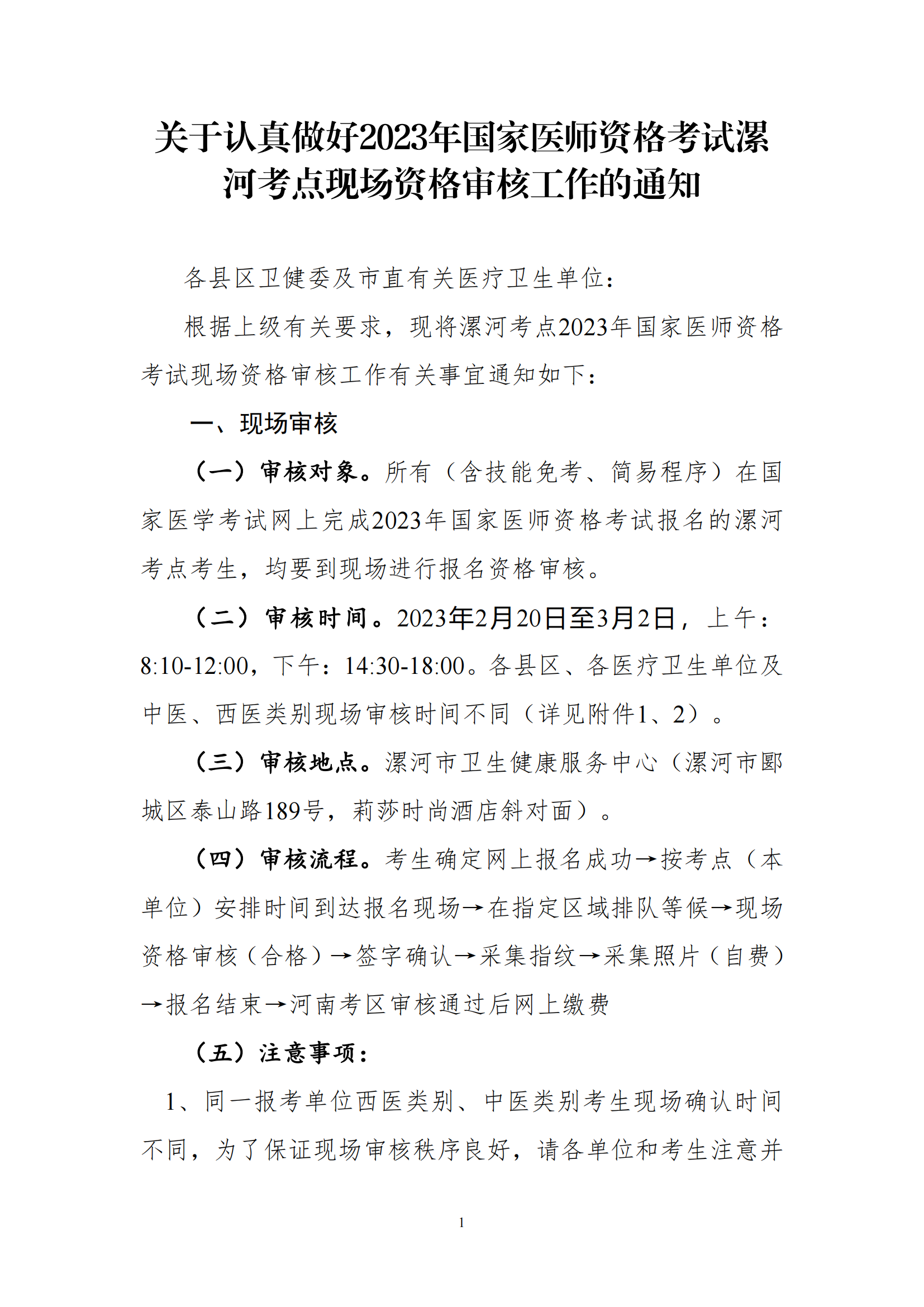 2.2023年医师资格考试临床、口腔和西医乡村全科类别漯河考点现场确认时间安排