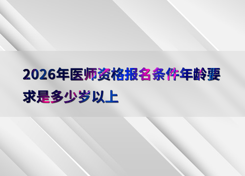 2026年医师资格考试报名没有明确的年龄上限要求,但考生需满足学历和试用期条件。
