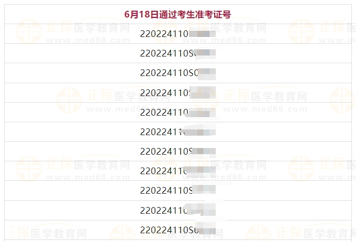 6月18日吉林考点医师资格实践技能考试(临床执业类别)通过考生准考证号