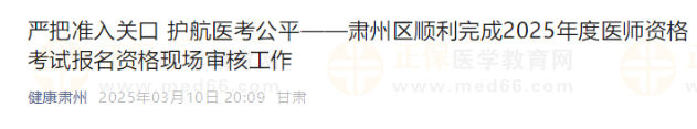 甘肃肃州区顺利完成310名考生2025年度医师资格考试报名资格现场审核工作,官方通知如下: