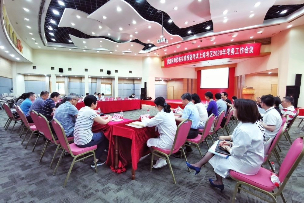 2020年6月19日,国家医师资格实践技能考试考务会议在上海长海医院顺利召开。市卫健委医政医管处吴宏处长、市中医药发展办公室管红叶副处长出席会议,市卫生人才交流服务中心吴晓东主任主持会议。各类别首席考官、各基地考务负责人及相关区卫健委医政部门工作人员,近50人参加会议。