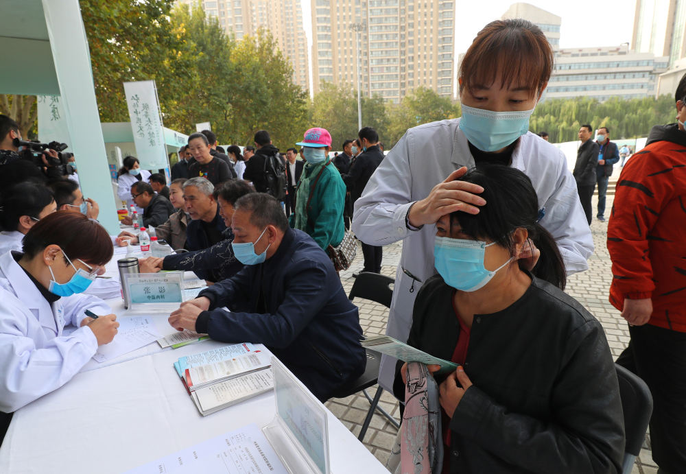 由河南中医药大学第一附属医院、河南省中医院、河南中医药大学第三附属医院、河南省洛阳正骨医院、河南省中医药研究院附属医院、郑州市中医院、郑州市骨科医院搭起的中医健康咨询义诊台前,前来问诊、咨询、体验中医疗法的市民群众更是排起了长队。