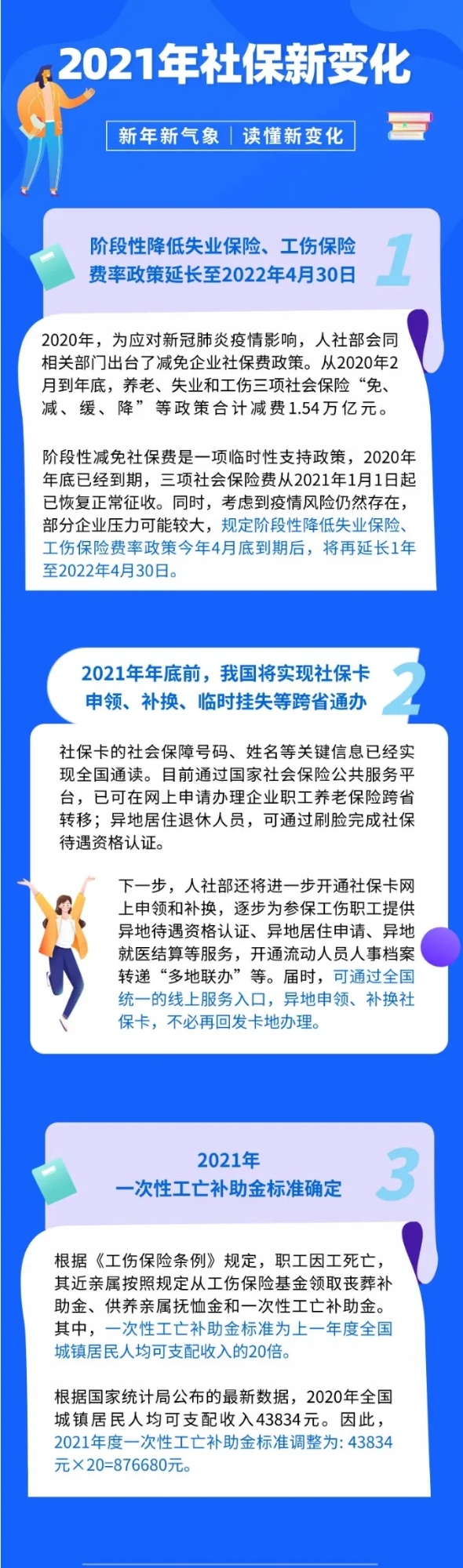 新年新气象。你的社保今年也有新调整,主要涉及医疗、失业、工伤等多方面。在阶段性降低失业保险、工伤保险费率方面,减免支持政策将延长至2022年4月30日。