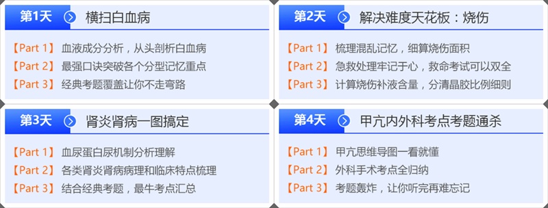 医学教育网特为各位考生开设了「考点秒杀营」直播课——4天4科高频考点get√,胜过自己扣3个月!由深受学员喜爱的多位老师为大家直播授课,仅需1元从day1-day4体验人类高质量医考备战干货输出!