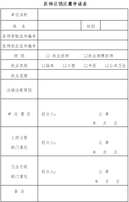 医师注销注册申请表