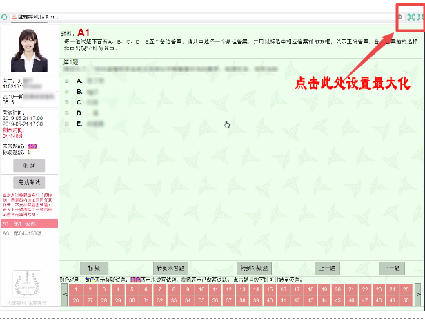 但根据考生反馈,真正考试中的系统是一个网页,默认打开不是最大化,考生可以点击浏览器右上角最大化按钮调整(可以放大一点点)。如果实在看不清可以尝试能否使用键盘“Ctrl和+”放大网页比例或者调整电脑分辨率,必要时也可以举手示意监考老师。但还是建议考生考试的时候戴上“适合自己的眼镜”更放心哦~