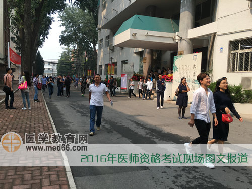 2016年全国医师资格考试于9月24日正式开考,医学教育网小编奔赴北京地区各考点,在考点苦苦等候两个半小时,等候考试结束出场的医师资格考生!下面请跟随众小编的镜头来看一下考生们在第一场考试后或自信、或骄傲的状态吧!