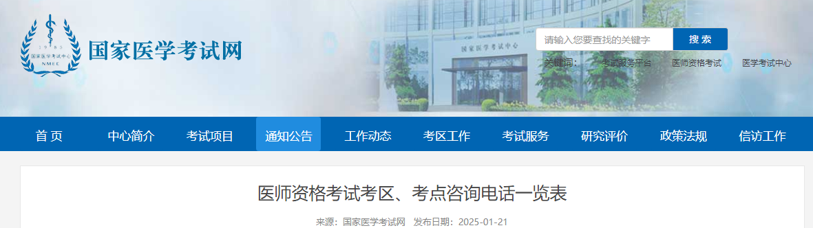 国家医学考试网更新了2025年医师资格考试全国考区考点咨询电话,请各位考生及时收藏。2025年医师资格考试报名预计将于2月8日开始,请各位考生做好报名准备,提前查看报名审核要求(点击查查看>>),针对报名审核有疑问的考生可以在报名审核期间咨询具体所在考区考点。