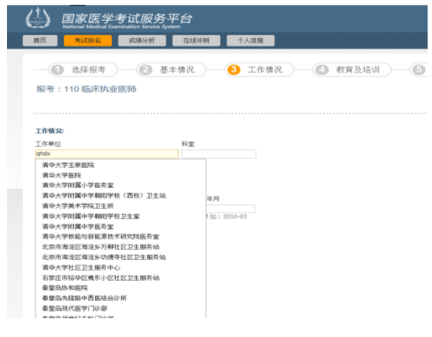 答:在系统中以上两者的填写方式相同。如填写工作单位,在网上报名系统中“工作单位”可以通过输入拼音首字母或直接填写工作单位名称的方式检索,在查询到的下拉框中选择您的工作单位即可。当鼠标从工作单位项移开后,如果工作单位文本框显示黄色表示您输入的工作单位没有收录在网站工作单位字典中(若出现此种情况,请您仔细核对输入的工作单位是否有误,若确认无误,则需申请添加数据,请按系统提示登陆相关链接进行相应的操作。具体操作步骤见下个问答);显示红色表示您未输入工作单位;显示灰色表示您选择的工作单位存在系统中并可以使用。如下图: