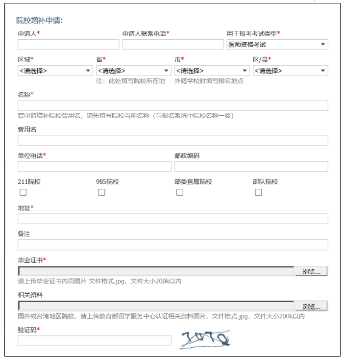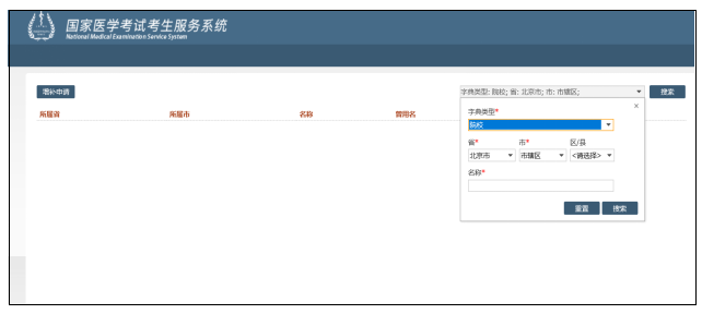 答:在毕业学校下拉菜单中选择院校名称。如菜单中没有相应的院校名称,则需申请添加数据,请按系统提示登陆相关链接进行相应的操作,完成后联系考区,待后台数据库添加成功后在菜单中选择。