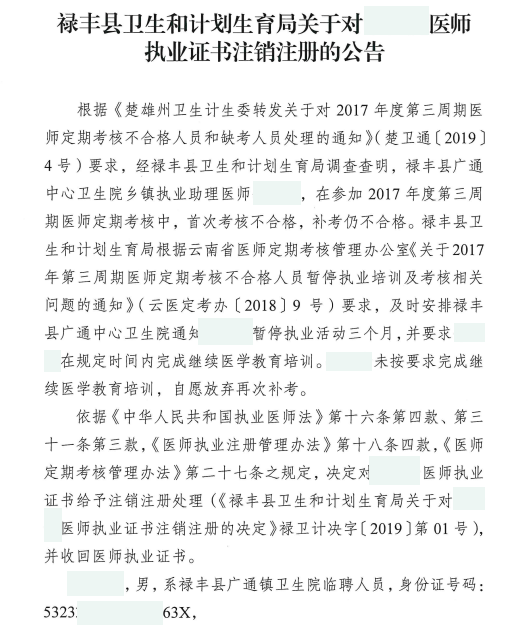 禄丰县卫生和计划生育局发布关于对医师执业证书注销注册的公告,为帮助大家了解,医学教育网小编为您整理解答如下: