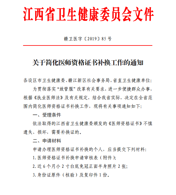 近日新余市卫健委公布关于简化医师资格证书补换工作的通知,医学教育网小编为大家整理内容如下: