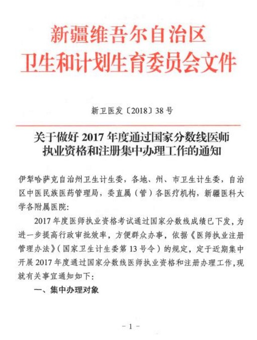 “2017年新疆通过国家分数线医师执业资格和注册集中办理工作的通知”由医学教育网的小编为您整理,希望小编的文章可以对您有帮助。