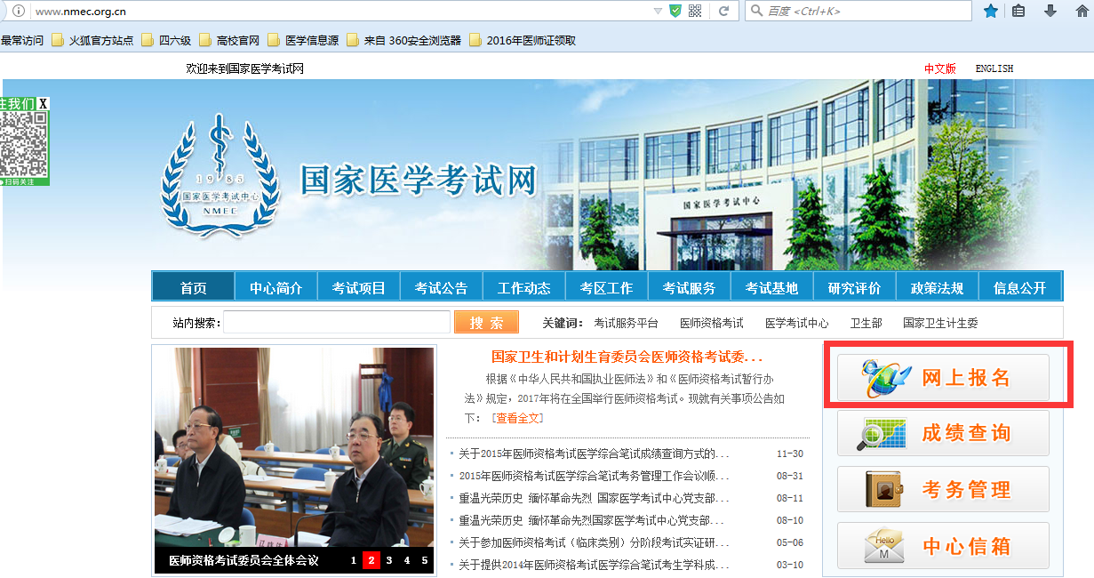 (一)登录国家医学考试网(网址是:http://www.nmec.org.cn/),点击:“网上报名”;