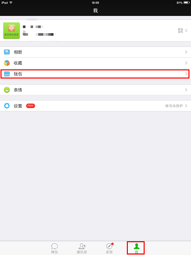 在微信上点击“我”,选择“钱包”,进入 :