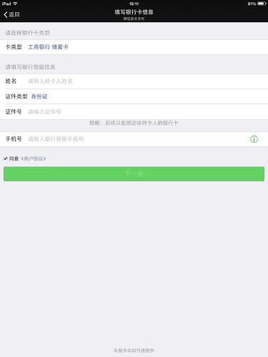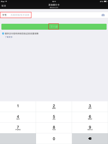 第一步、在微信上关联银行卡
