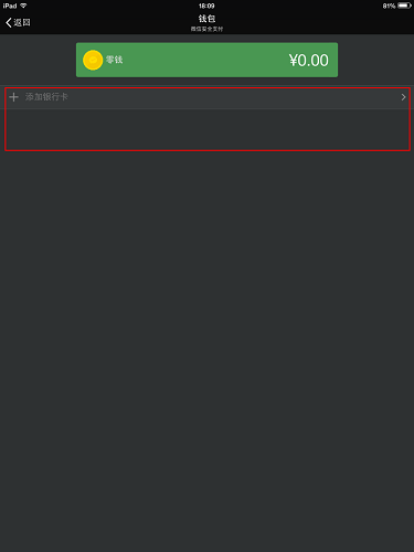 添加完成之后的银行卡会显示在这里,上面会显示您微信钱包中的金额: