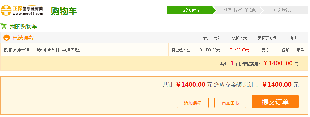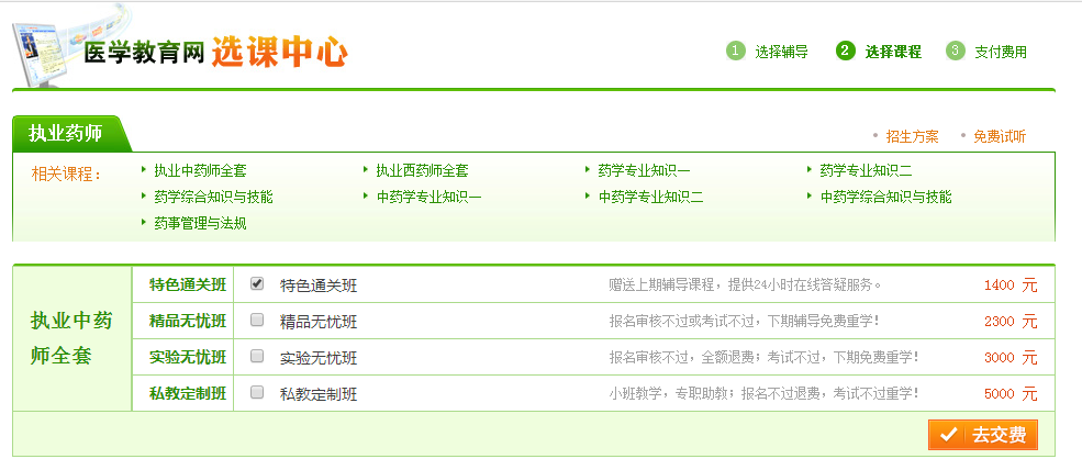 确认您选择的课程,以执业药师考试课程为例: