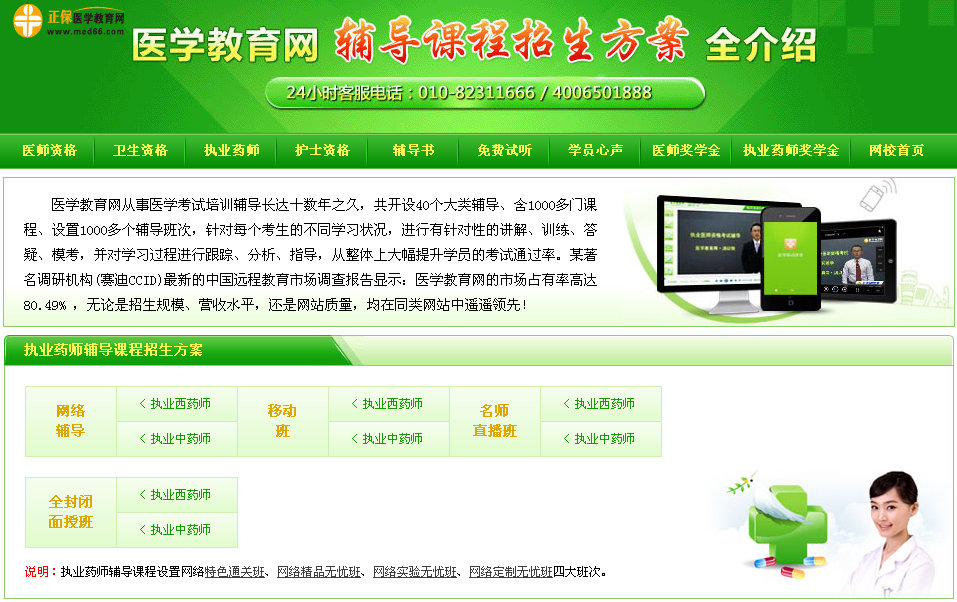 目前正保医学教育网被百度收录的各类医学专业信息和考试信息近1000万条,注册学员300多万人,日最高独立IP访问量可达117万人,日最高峰值页面流量达了2000多万次,它是广大考生了解医学类考试政策、动态和参加培训的主要网站,在考生中有着强大的影响力和号召力。根据赛迪CCID调研机构的中国远程教育市场调查报告显示:医学教育网的市场占有率高达80.49%,无论是招生规模、营收水平,还是网站质量,均在同类网站中遥遥领先!