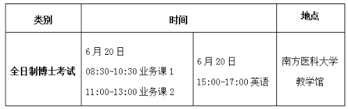全日制博士:英语(不考听力,其他题型与往年一致),专业基础课、专业课全部为我校自命题,分数线由学校自定。初试科目以《南方医科大学 2020年博士研究生招生专业目录》中公布的考试科目为准。